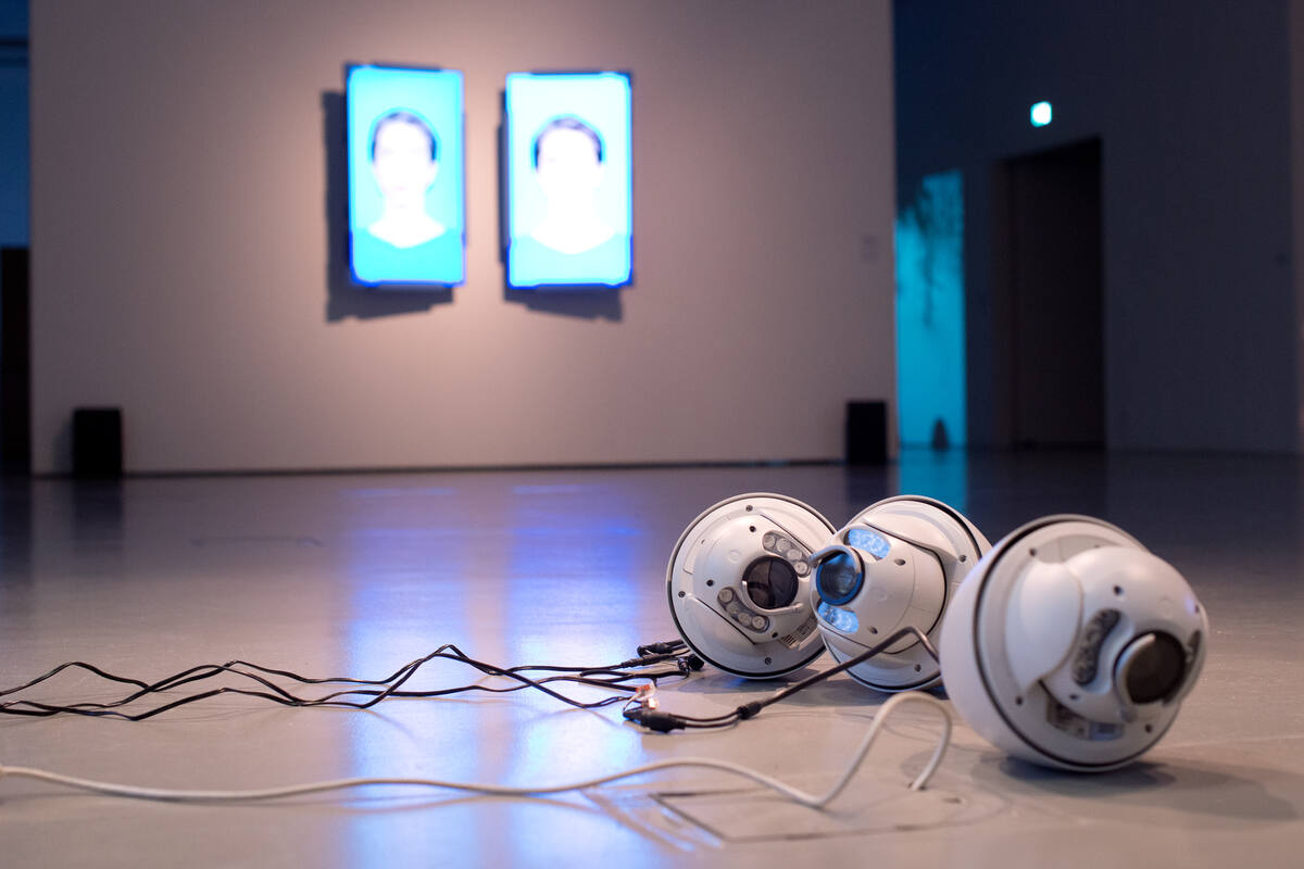 Im Rahmen der Ausstellung Monitoring wurde die Installation Pan, Tilt And Zoom von Aram Bartholl, Künstler beim nächsten Werkleitz Festival 2019 Modell und Ruine, vorgestellt.
