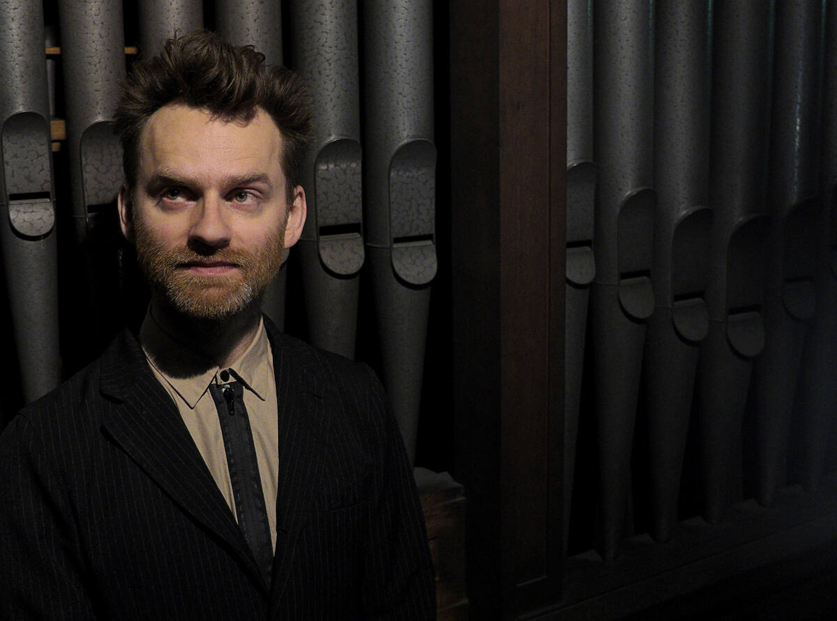 Festivalkünstler Hampus Lindwall probt an der Sauer-Orgel in der Halleschen Moritzkirche