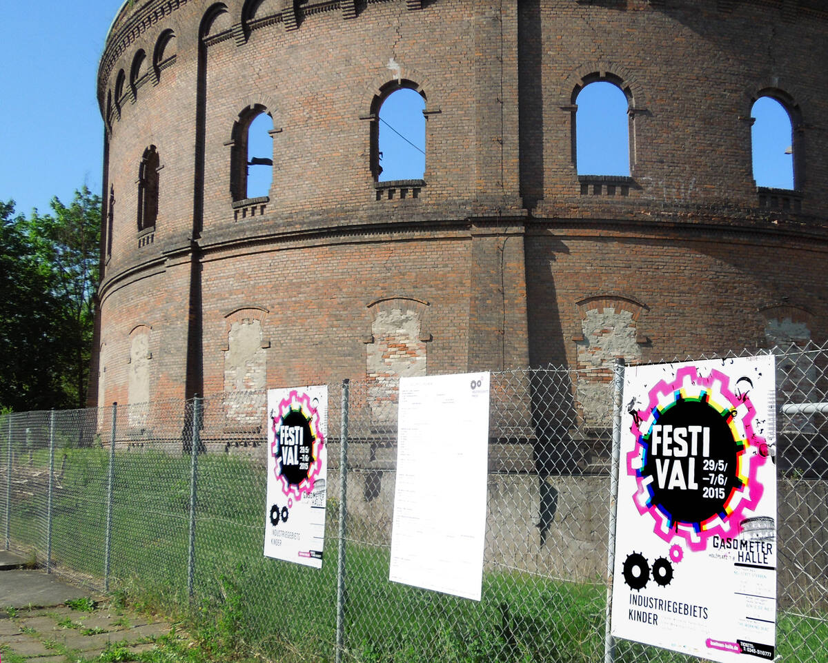 Das Gasometer am Holzplatz wird vom 29. Mai bis 7. Juni zur spektakulären Kulisse für das Festival Industriegebietskinder. Im Zentrum des Festivals stehen die drei Theaterstücke NEU STATT STERBEN, Ach je die Welt und The Working Dead. Es sind Inszenierungen zu Orten, die sich von ihrer industriellen Vergangenheit verabschieden mussten: Halle-Neustadt als Chemiearbeiterstadt, Dortmund-Hörde von der Stahlindustrie und Berlin-Oberschöneweide von der Elektroindustrie. Werkleitz ist Kooperationspartner des Thalia Theaters für das Festival Industriegebietskinder.