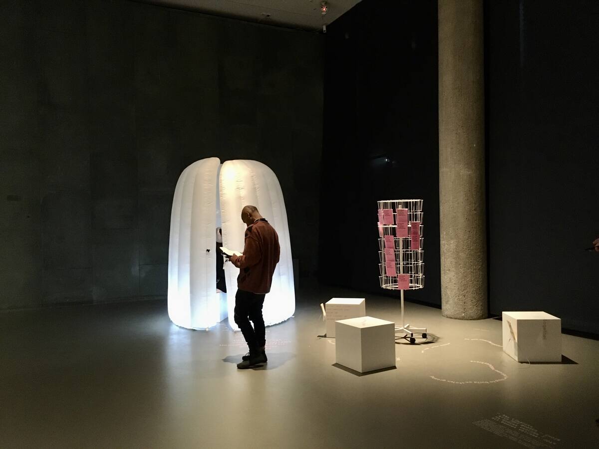EMAP/ EMARE Stipendiatin Aay Liparoto und HOT BODIES - CHOIR präsentieren die Arbeit no bodies welcome | all bodies welcome bei der transmediale 2020 in der Gruppenausstellung The Eternal Network, die von 28. Januar bis 1. März im Haus der Kulturen der Welt in Berlin geöffnet hat. Das Werk von Aay Liparoto trägt unserer Abhängigkeit von Technologie bei Informationen, Arbeit, Sex, Unterhaltung, sozialem Miteinander, Gesundheitsversorgung und allem dazwischen Rechnung. Was bedeutet dies für queere feministische Körper, die beim Informationsaustausch eher auf DIY angewiesen sind? Das in einem „Void Pod“ angesiedelte spekulative Chorstück entsteht über Workshops mit HOT BODIES – CHOIR, einem queeren, LGBTQIA+ und feministischen Chor aus Brüssel. Eingehüllt in Licht und Ton fordern uns die Singstimmen zum Nachdenken über Macht und Politik von Onlineräumen auf.