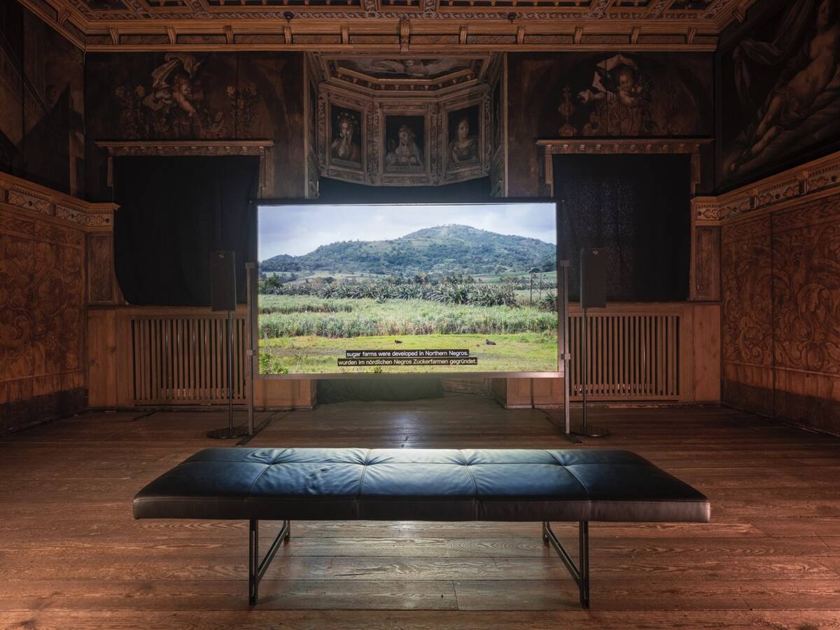 Die multidisziplinären Kollaborationen des in New York und Berlin ansässigen Künstler:innenduos Enzo Camacho (geb. 1985 in Manila, Philippinen) und Ami Lien (geb. 1987 in Dallas, USA) kreisen um Fragen von Macht, Eigentum und Besitz, die dem rassistischen kapitalistischen System zugrunde liegen. Ob eine kleine Gemeinbedarfsfläche in Downtown Manhattan oder die riesigen Zuckerrohrfelder der philippinischen Insel Negros – untersucht wird, wie sich hegemoniale Macht durch Landbesitz behauptet. Zugleich wird über Orte und Verantwortung von künstlerischer Arbeit innerhalb von Netzwerken des Widerstands reflektiert. Im Rahmen von Planetarische Bauern zeigen Camacho und Lien ihren jüngsten Film Langit Lupa (2023) sowie frühere und neu in Auftrag gegebene Arbeiten aus handgeschöpftem Papier und organischem Pflanzenmaterial. Langit Lupa, Ergebnis von Langzeitrecherchen zum System der Zuckerplantagen auf Negros, ist ein experimenteller Dokumentarfilm über das sogenannte Massaker von Escalante 1985, bei dem paramilitärische Regierungstruppen einen friedlichen Protest von Plantagenarbeiter:innen unter Beschuss nahmen.