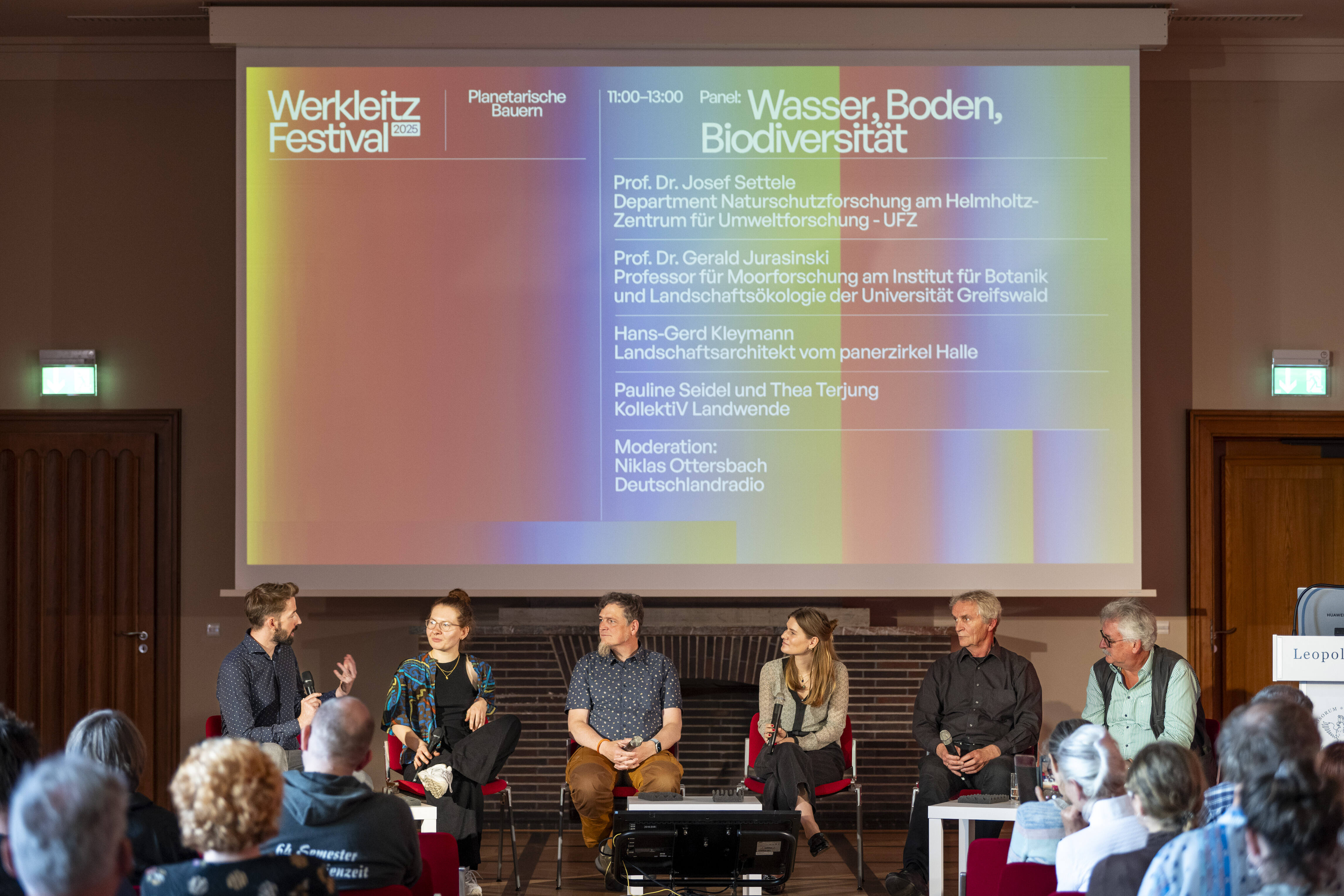 Der Agrarwissenschaftler und Professor für Ökologie Josef Settele vom Helmholtz-Zentrum für Umweltforschung in Halle gibt einen Einblick in die Bedrohung der Biodiversität und Gerald Jurasinski von der Universität Greifswald veranschaulicht die Bedeutung von Moorwiedervernässung. Anschließend stellen Psychologiestudentin Thea Terjung und Geografin Pauline Seidel ihre Initiative KollektiV Landwende sowie die Methoden der Zukunftswerkstatt vor und der Landschaftsarchitekt Hans-Gerd Kleymann präsentiert ein lokales Regenwasser-Projekt, das Schule machen könnte.