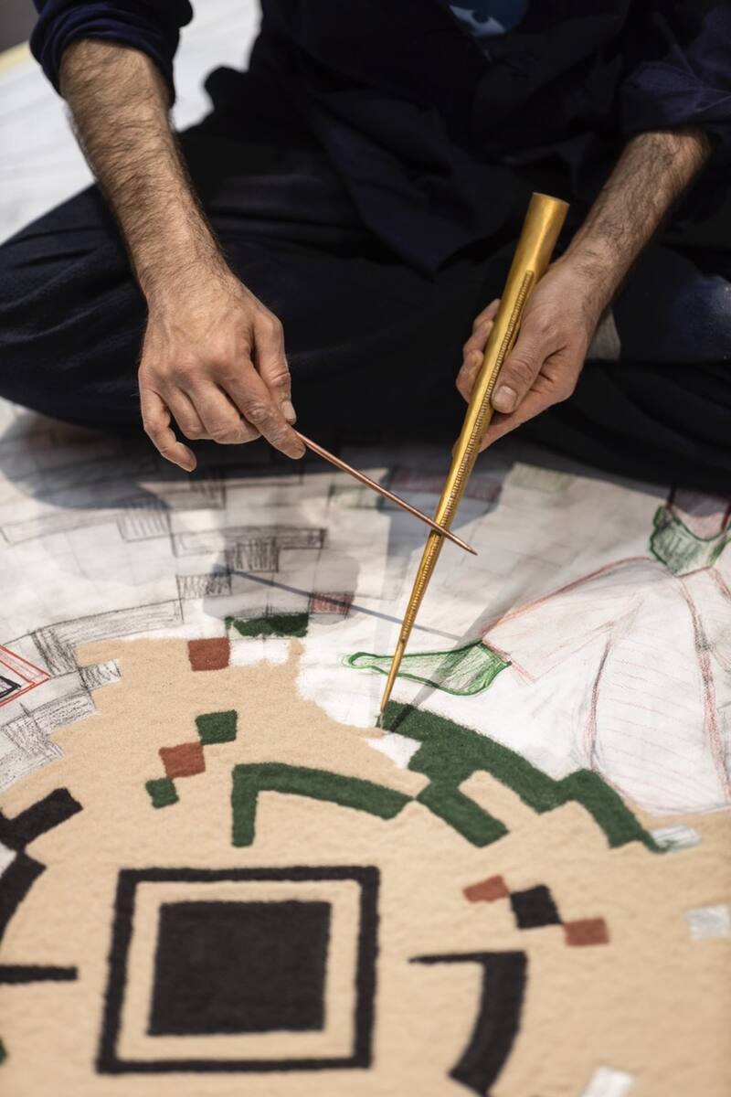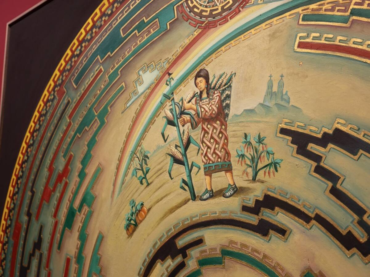 Navarros Mandala besteht aus Erde, die in Mexiko und in der Umgebung von Halle gesammelt und mit verschiedenfarbigen Pigmenten aus lehmhaltigen Naturböden versetzt wurde. Dazu treten kleinformatige Temperamalereien auf Papier und ein Ölgemälde mit eingearbeiteter Erde in einen wechselseitigen Dialog. Die Arbeiten verbinden indigene Metaphorik mit Konzepten sozialer Interdependenz und evozieren einen planetaren Zustand, in dem Spiritualität und Politik zu einem Miteinander finden müssen. Ebenfalls Bestandteil ist ein einzelnes Salzkorn aus Halle.